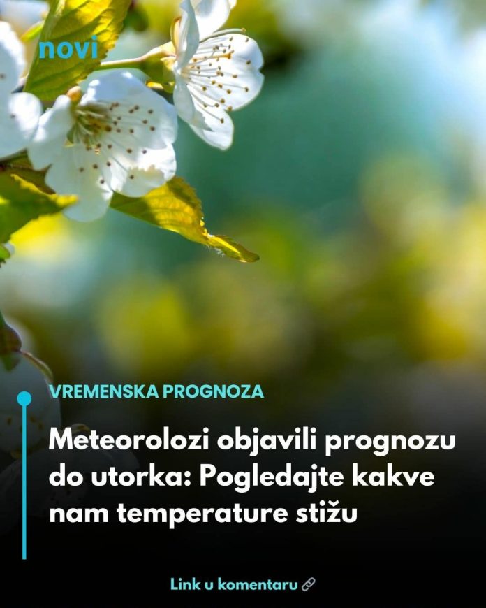 U utorak, umjereno do pretežno oblačno vrijeme. Poslije podne ponegdje u Bosni je moguća slaba kiša. Vjetar slab sjeverni i sjeveroistočni. Jutarnja temperatura zraka od 4 do 10, a dnevna od 12 do 18 °C, javlja Federalni hidrometeorološki zavod.