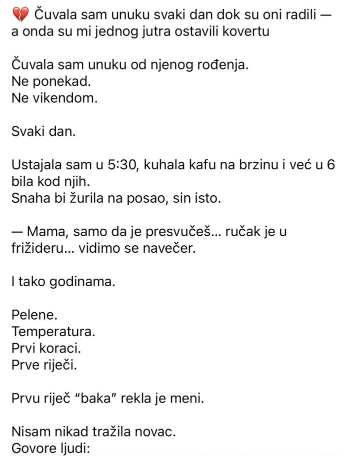 💔 Čuvala sam unuku svaki dan dok su oni radili — a onda su mi jednog jutra ostavili kovertu Čuvala sam unuku od njenog rođenja.