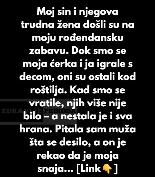 Moj sin i njegova trudna žena došli su na moju rođendansku zabavu. Moja ćerka i ja smo provele popodne igrajući se s decom, dok su oni ostali kod roštilja i razgovarali. Kada smo se vratile da ih proverimo, već su otišli — a s njima i sva hrana.