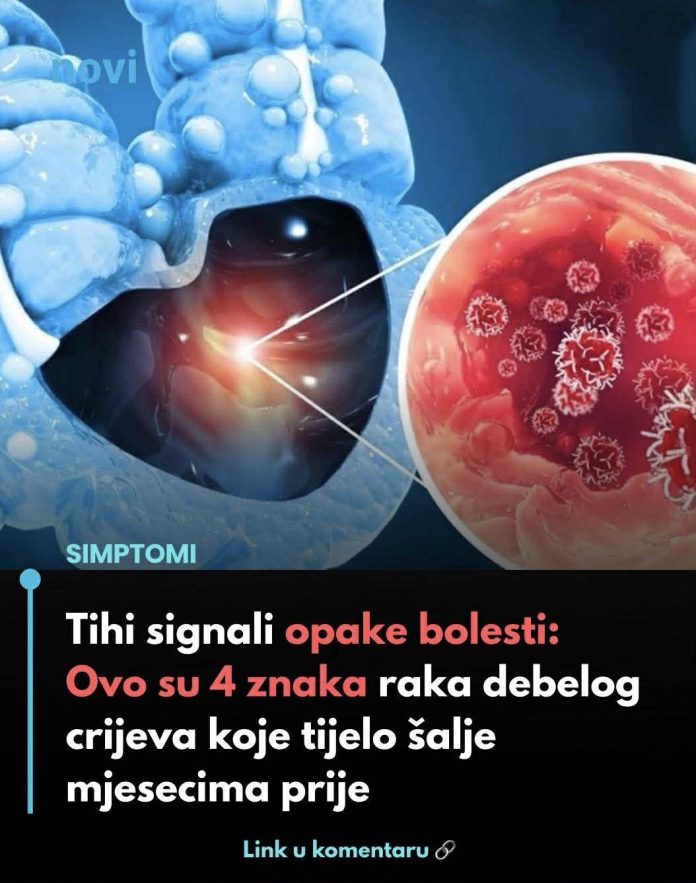 Liječnici savjetuju da svaka promjena u probavnim navikama, bilo da se radi o zatvoru, proljevu, bolovima ili pojavi krvi, koja traje dulje od tri tjedna, zahtijeva hitan pregled. Iako navedeni simptomi mogu biti posljedica mnogih bezazlenih stanja, ignoriranje upornih signala koje tijelo šalje je rizik koji se ne isplati. Rano otkrivanje ključ je uspješnog liječenja i spašava život, piše Vecernji.hr.