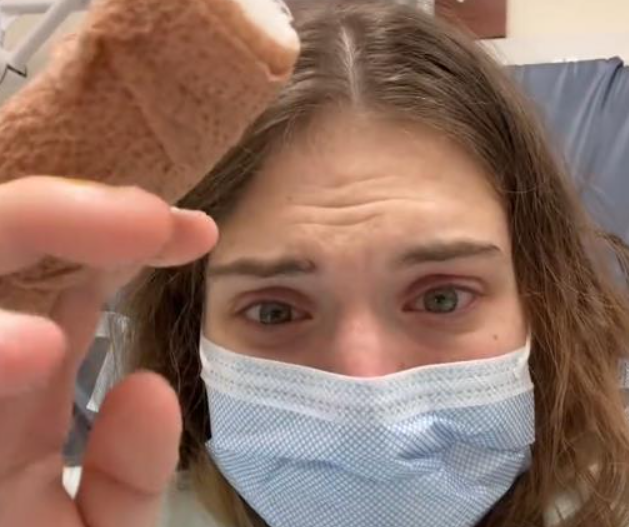 Gabi, koja radi kao menadžerka restorana, nastavila je da radi duge smene uprkos sve jačem bolu. Kada je te večeri skinula zavoj, prizor ju je šokirao. Prst joj je postao tamno ljubičast i snažno je pulsirao. Bol je postala nepodnošljiva