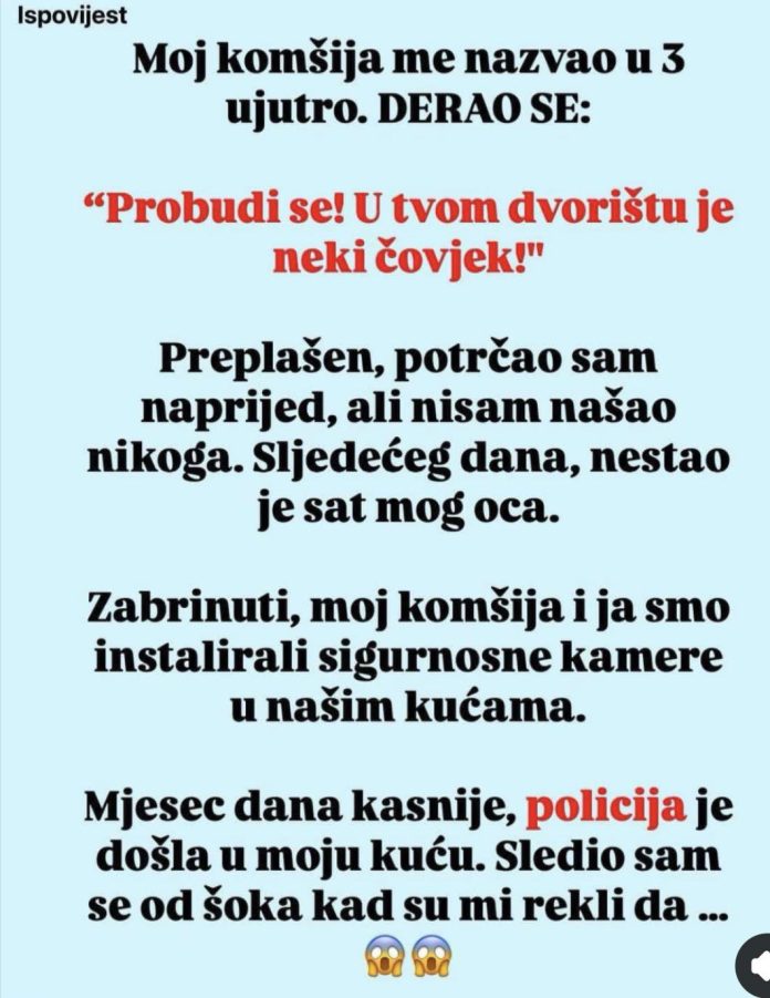 – Moj komšija me nazvao u 3 ujutro. Viknuo je: “Probudi se! U tvom dvorištu je neki čovjek!” Preplašen, potrčao sam naprijed, ali nisam našao nikoga. Sljedećeg dana, nestao je sat mog oca.