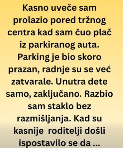 Kasno uveče sam prolazio pored tržnog centra. Parking je bio skoro prazan, radnje su se već zatvarale. Dok sam hodao prema autu, začuo sam plač.