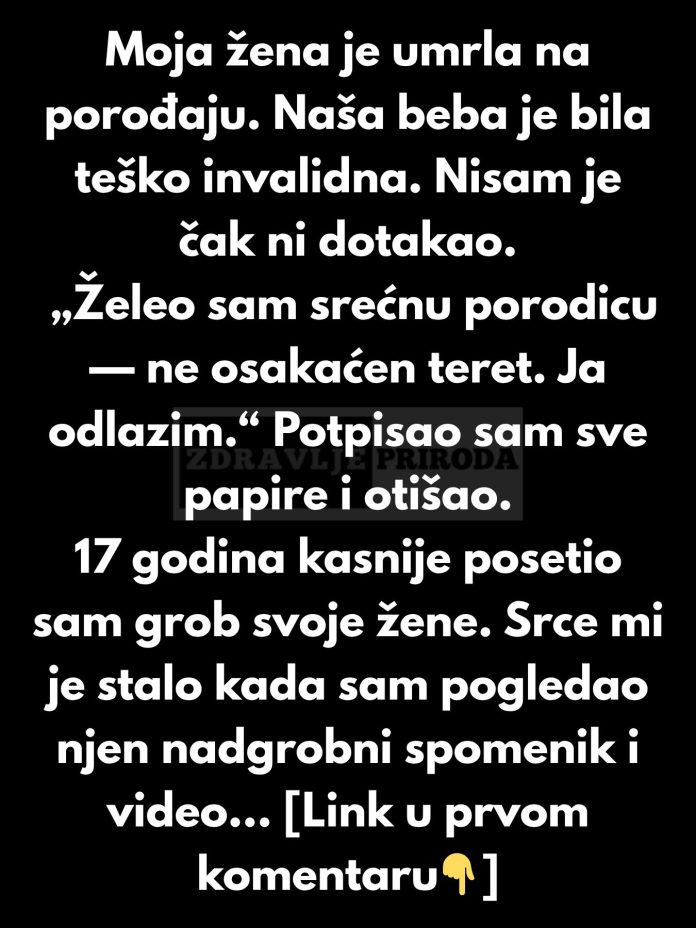 Moja žena je umrla na porođaju. Naša beba je bila teško invalidna. Nisam je čak ni dotakao. „Želeo sam srećnu porodicu, a ne osakaćen teret“, rekao sam. Potpisao sam sve i otišao.