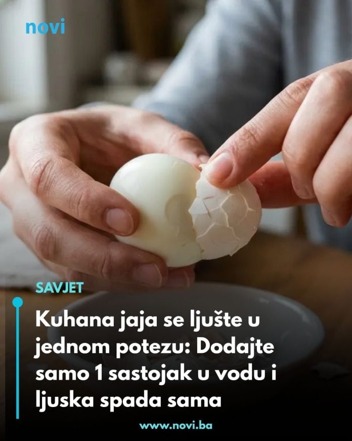 Svježina jaja je obično glavni problem, jer se kod onih tek kupljenih opna bukvalno „zalijepi“ za jaje. Soda bikarbona mijenja pH vrijednost vode i tjera tu žilavu membranu da popusti. Čim jaja budu gotova, vidjet ćete kako ljuska spada sama bez ikakvog mučenja i „kopanja“ noktima.