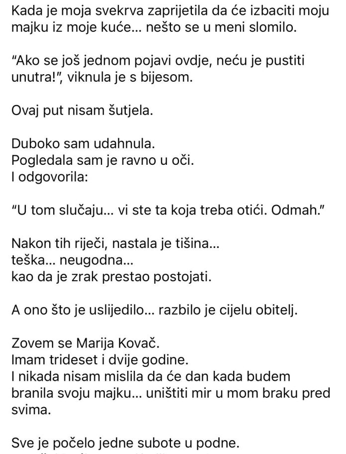 Kad mi je svekrva prijetila da će izbaciti majku iz kuće… nešto se u meni slomilo.